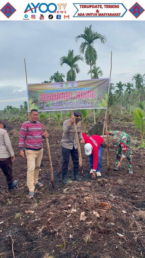 kec. Plangiran Inhil Riau|| ayoonews – 25 Agustus 2025 sekira pukul 11.00, Polsek kec plangiran Beserta Jajaran laksanakan kegiatan penanaman jagung Di pimpin langsung oleh Kapolsek Pelangiran di Kanal 8,5 Bagan Jaya Kecamatan Pelangiran Kab. Indragiri Hilir.