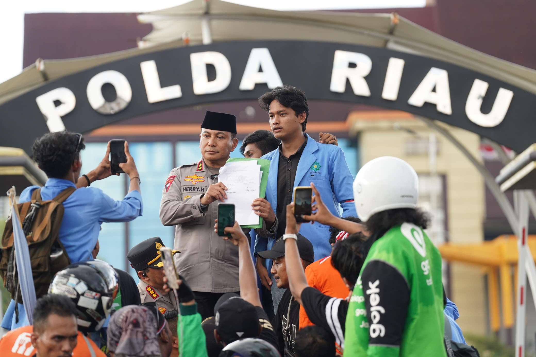 Kapolda Riau Temui Massa Aksi, Sampaikan Bela Sungkawa dan Komitmen Usut Tuntas Kasus Driver Ojol