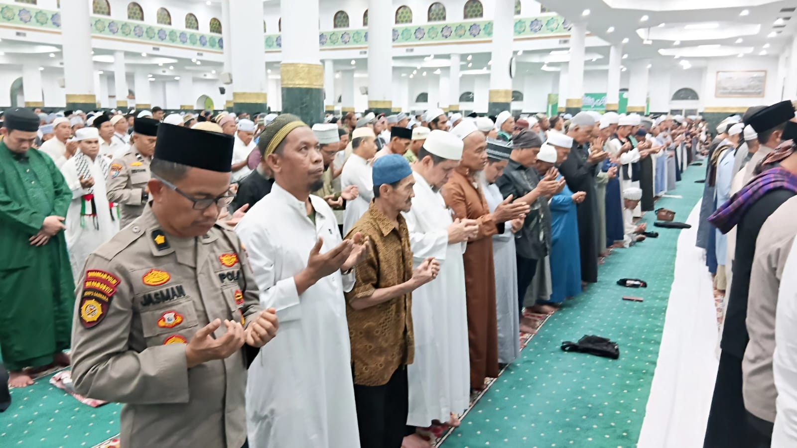 PEKANBARU, – Polda Riau, Forkopimda Provinsi Riau, dan Komunitas Driver Ojol se-Kota Pekanbaru serta berbagai lapisan masyarakat menggelar acara Sholat Ghaib dan doa bersama yang penuh khidmat di Mesjid Agung An-Nur, Pekanbaru, Sabtu (30/8/2025) malam.