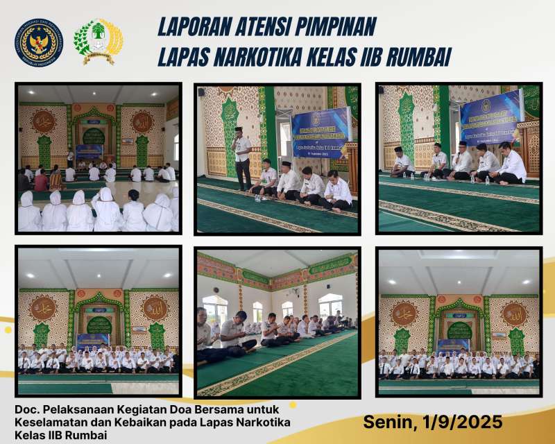 Pekanbaru Riau || ayoonews– Dalam rangka menumbuhkan semangat cinta tanah air serta memperkuat persatuan dan kesatuan bangsa, Lapas Narkotika Kelas IIB Rumbai melaksanakan Doa Bersama di Mesjid At-Taubah pada Senin Pagi, (01/09/2025).