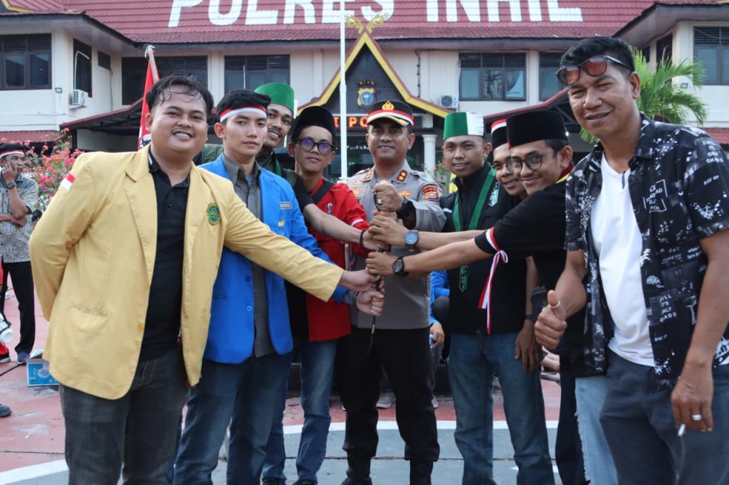 Sekitar pukul 16.45 WIB, organisasi mahasiswa dari berbagai elemen, seperti HMI, GMNI, PMII, Himapersis, dan Dema STAI berkumpul di Lapangan Gajah Mada Tembilahan untuk konsolidasi. Kasat Intelkam Polres Inhil, IPTU Jamaluddin, S.H., memberikan apresiasi kepada mahasiswa sekaligus mengajak mereka menjadikan kegiatan ini sebagai sarana mempererat komunikasi dan menjaga kondusifitas daerah.
