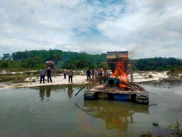 “Saat sampai di lokasi, petugas hanya menemukan dua unit rakit PETI yang sudah ditinggalkan pemiliknya. Untuk mencegah agar rakit tersebut tidak kembali digunakan, dilakukan pemusnahan dengan cara merusak dan membakarnya,” ungkap AKP Linter Sihaloho.