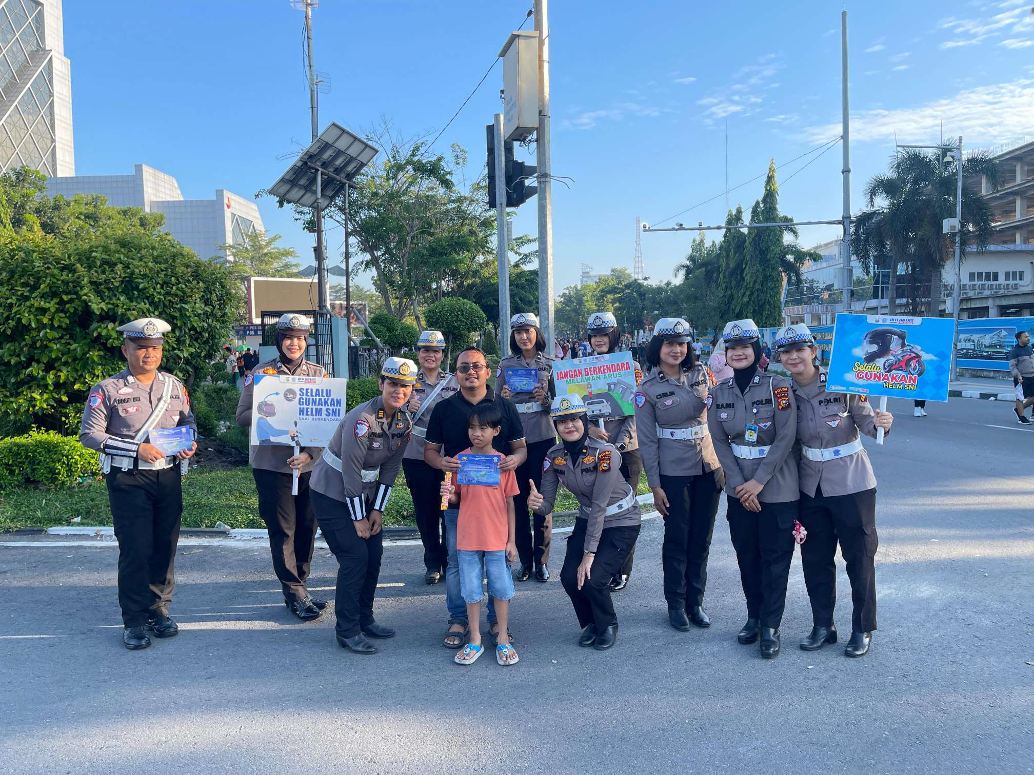 Pekanbaru Riau || ayoonews – Paur Sie BPKB Ditlantas Polda Riau, AKP Fauza Hanes Tiara memimpin langsung kegiatan Polantas Menyapa di kawasan Car Free Day (CFD) Jalan Jenderal Sudirman, Pekanbaru, pada Minggu pagi. (14/09/25)