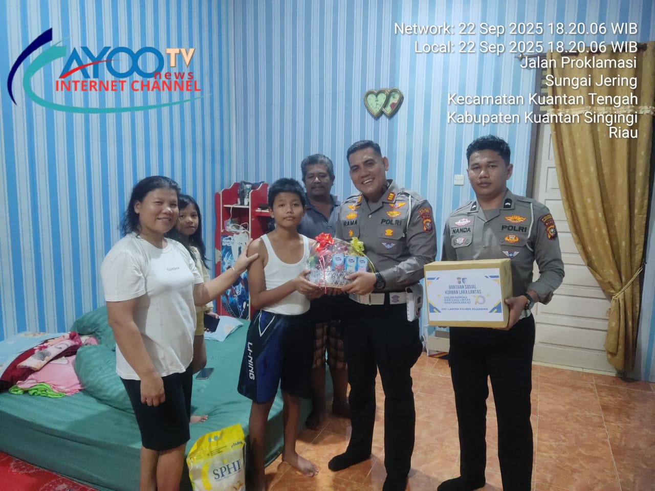 Ayoo.news || Kuantansingingi – Dalam rangka memperingati Hari Ulang Tahun Lalu Lintas Bhayangkara ke-70, Satuan Lalu Lintas (Satlantas) Polres Kuantan Singingi melaksanakan kegiatan sosial bertajuk Polantas Menyapa dengan memberikan bantuan kepada korban kecelakaan lalu lintas, Senin (22/9/2025) sore.