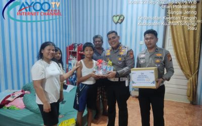 Spread the loveAyoo.news || Kuantansingingi – Dalam rangka memperingati Hari Ulang Tahun Lalu Lintas Bhayangkara ke-70, Satuan Lalu Lintas (Satlantas) Polres Kuantan Singingi melaksanakan kegiatan sosial bertajuk Polantas Menyapa dengan memberikan bantuan kepada korban kecelakaan lalu lintas, Senin (22/9/2025) sore. Kegiatan ini dipimpin langsung oleh Kasat Lantas Polres Kuansing AKP A. Ramadhan, S.H., M.Si bersama … Lanjutkan membaca Satlantas Polres Kuansing Gelar “Polantas Menyapa”, Salurkan Bantuan kepada Korban Laka Lantas dalam Rangka HUT Lantas ke-70