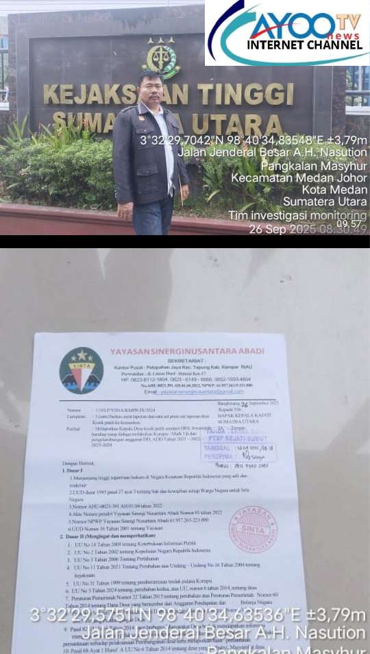 Desa Kosik Putih Padang Lawas Utara Sumut || ayoonews – 26 September 2025. Adanya ya dugaan penyalahgunaan dana desa kosik putih kepala Desa Kosik putih Drs Irwansyah Harahap Resmi Dilaporkan ke Kejati Sumatera Utara. Laporan Dana Desa Kosik putih yang di laporkan adalah anggaran dana desa dari tahun 2021 sampai 2024.