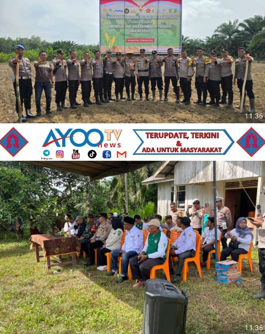 kelayang Inhu Riau || ayoonews- 8 Oktober 2025, pukul 09.00 wib Polsek Kelayang Laksanakan kegiatan *Program Nasional Penanaman Jagung Serentak Kuartal IV dalam Rangka mendukung Swasembada Pangan Th.2025* di areal perkebunan Desa Teluk Sejuah Kec.Kelayang.