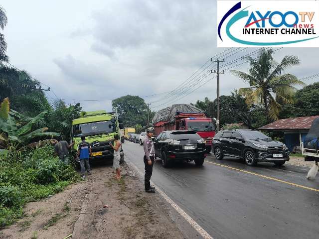 Pelalawan Riau || ayoonews – 10 Oktober 2025. Kecelakaan lalu lintas terjadi di Jalan Lintas Timur (Jalintim) KM 107, Desa Dundangan, Kecamatan Pangkalan Kuras, Kabupaten Pelalawan, pada Kamis pagi (9/10/2025). Insiden tersebut melibatkan dua kendaraan besar, yakni mobil Fuso pengangkut Crude Palm Oil (CPO) dan truk Fuso bermuatan kayu.