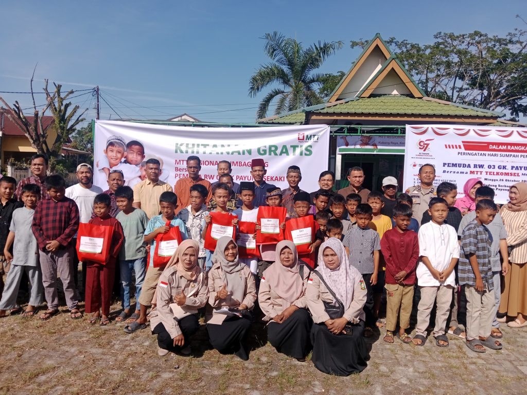 Inilah  yang di lakukan pemuda dan pemudi di lingkungan RW 03 perumahan Graha Kualu payung Sekaki, dalam rangka menyambut hari sumpah pemuda 28 Oktober 2025, pemuda di lingkungan RW 03 bekerja sama dengan Tim MTT Telkomsel laksanakan kegiatan sunat masal.